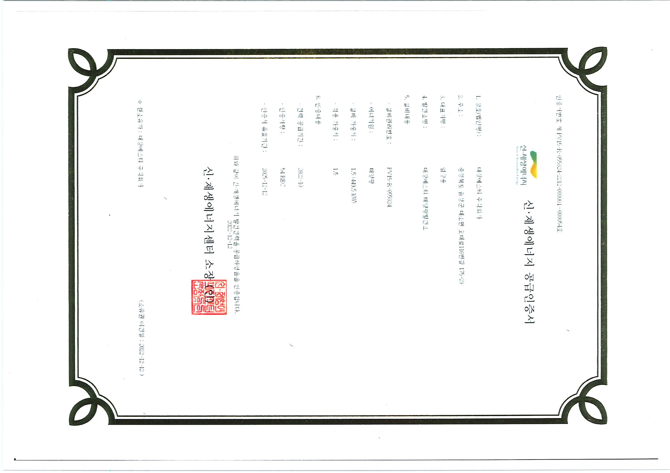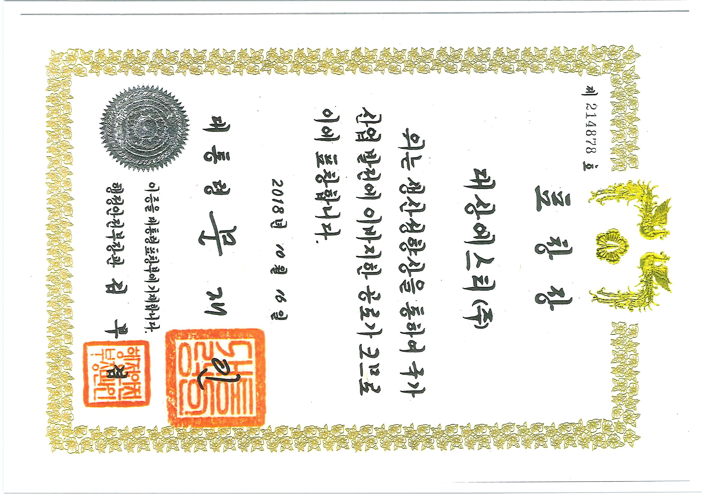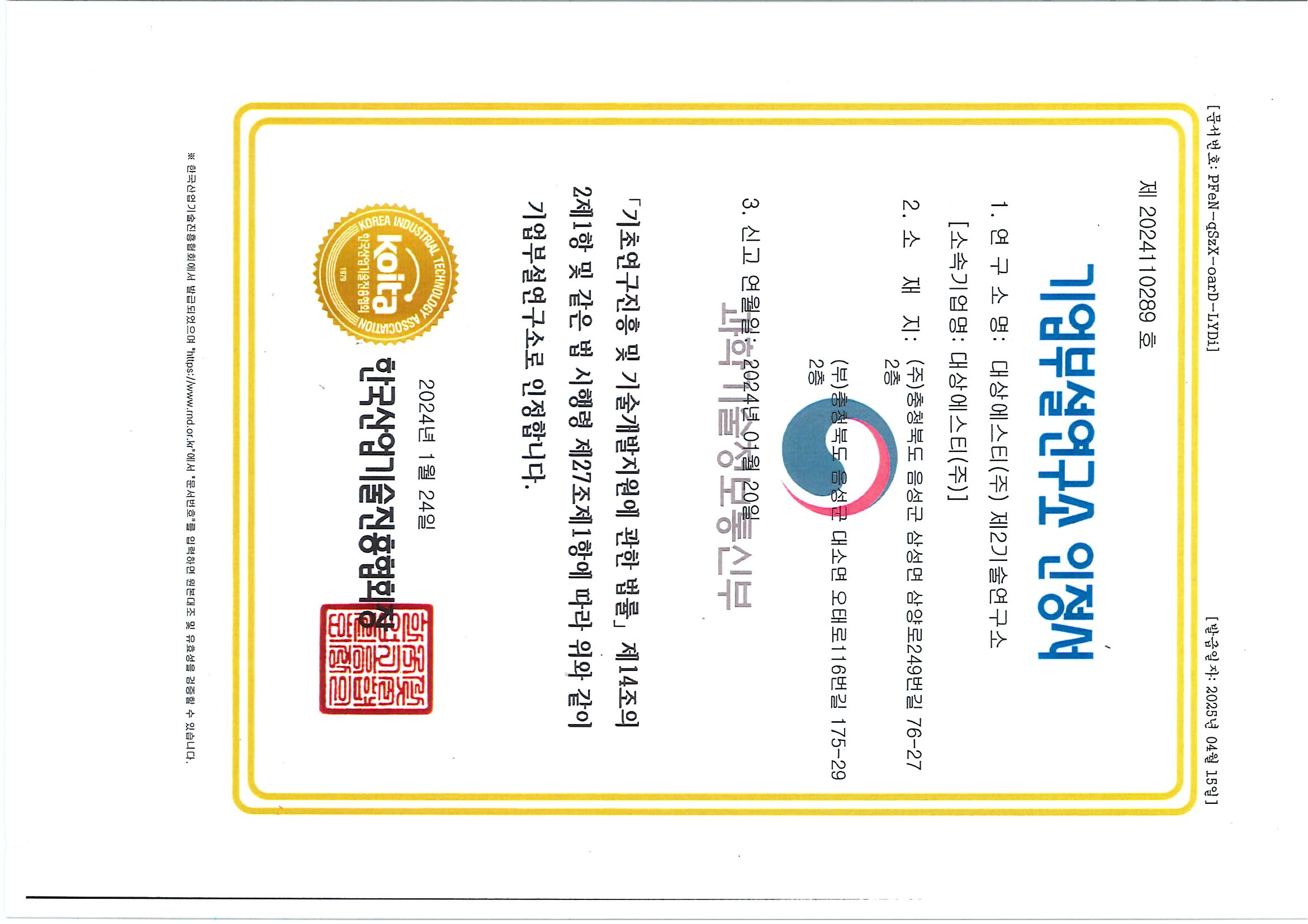 Certificate of accreditation for corporate research institute (Eumseong Factory)
