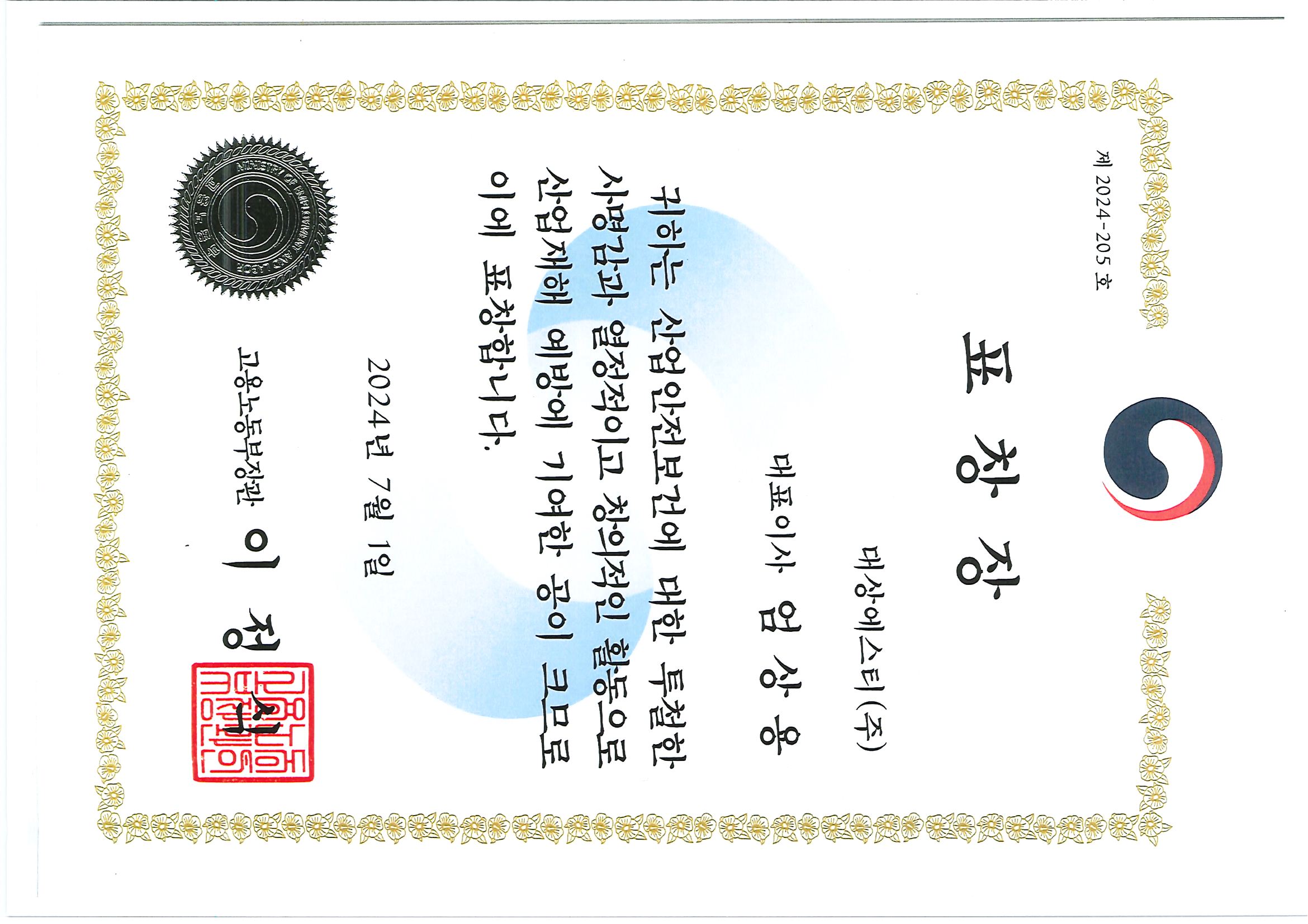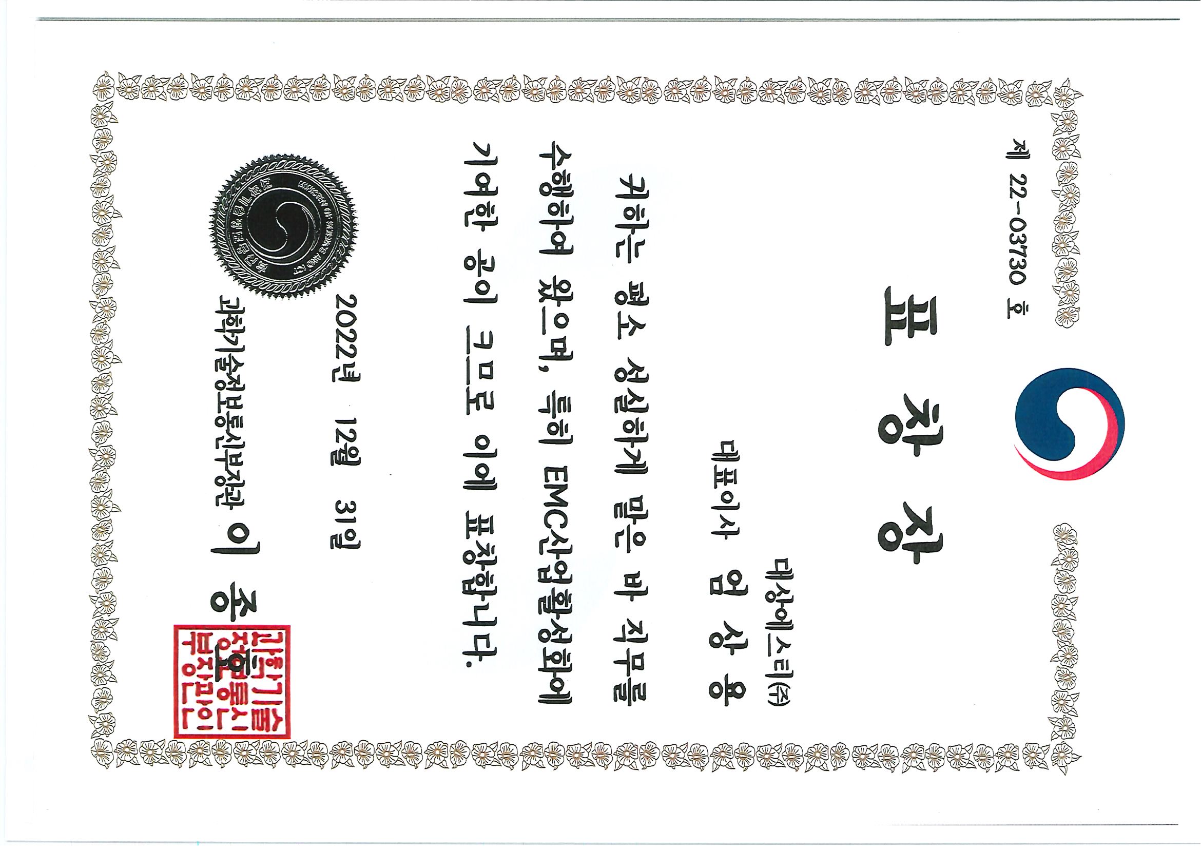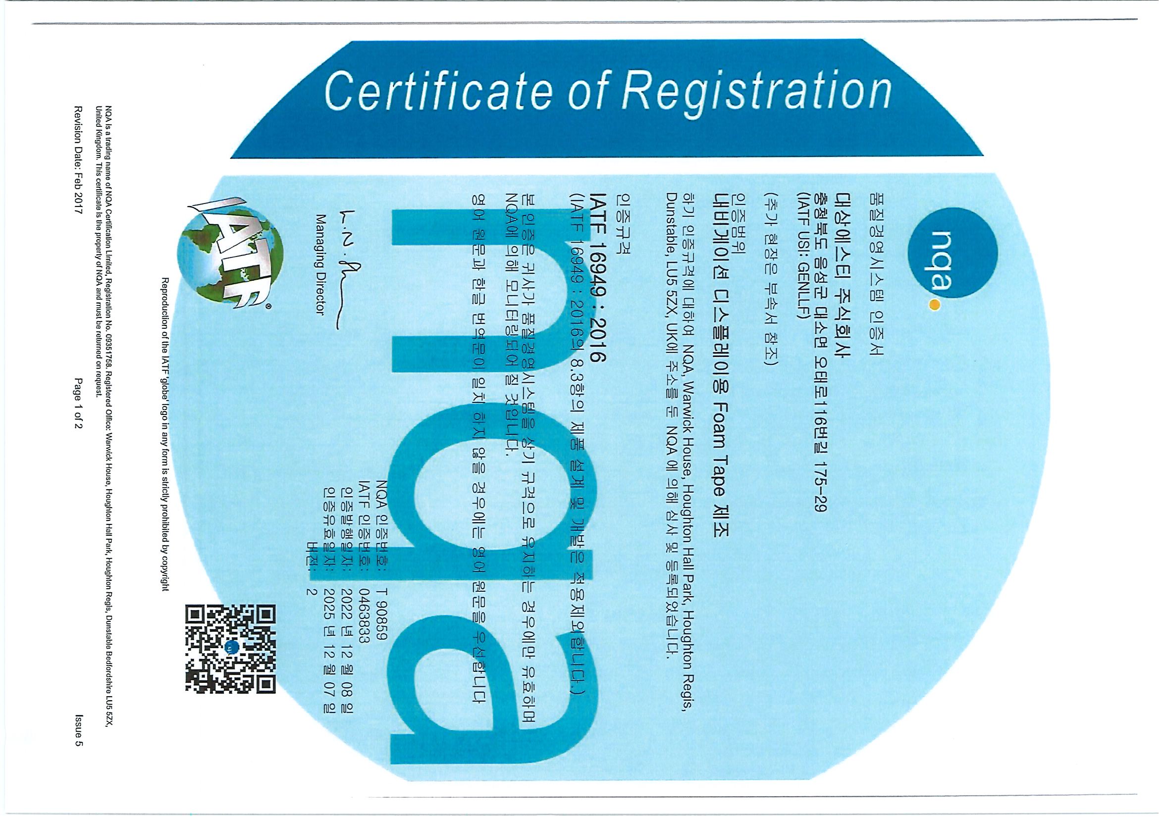 Certificate of accreditation for corporate research institute (Eumseong Factory)