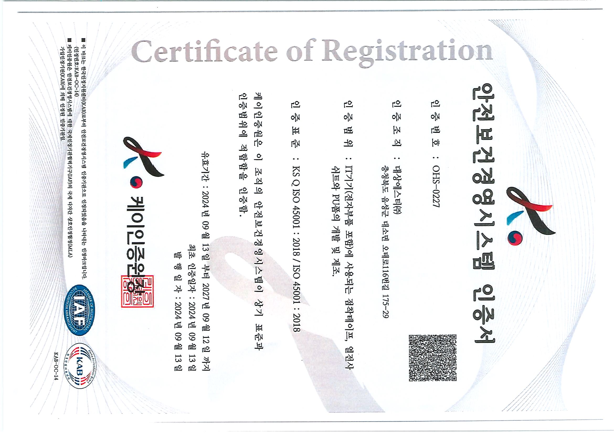 Occupational Health and Safety Management System Certificate(ISO45001)